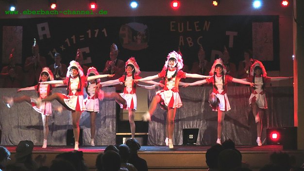 Tänzerisch herrschte vom sechsjährigen Tanzmäuschen Livi Zimmermann bis zur fetzigen Schautanzgruppe “Flames” viel Bewegung auf der Bühne. Mit von der tänzerischen Partie waren die jungen “Eulenknappen” und “Eulenküken”, die “Eulenfunken”, die “Nachteulen” (“Nachts im Museum”) und die große Garde der Rockenauer, die “Eulensterne”. Nicht fehlen durfte das elegant-laszive Männerballett, und einen flotten Auftritt hatte das Tanzmariechen Laura Blank. Ein artistisches Tanzduett präsentierten Jule Bettinghausen und Sophia Wierz.