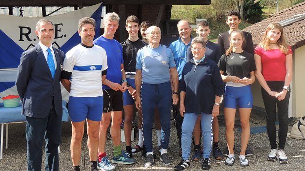 „Die frostigen Wintertage und heftigen Stürme haben wir überstanden“, stellte Kerstin Thomson vom RGE-Vorstand erleichtert fest. Sie freue sich, dass die zahlreich versammelte Ruderfamilie, darunter auch einige Ehrenmitglieder und Ehrenvorsitzender Robert Moray, nun bei milden Frühlingstemperaturen die neue Rudersaison eröffnen könne. Rückblickend freute sich Thomson, dass wichtige Ziele des vergangenen Ruderjahres vom Verein erfüllt werden konnten. Ein neues Breitensportboot konnte durch Spenden finanziert werden, das Bootshaus mit Leben erfüllt und der Kilometerrekord von 64.600 im Jahr 2011 gebrochen werden. Alle Vereinsmitglieder zusammen ruderten 2018 insgesamt 73.249 km, also 8.600 km mehr. Davon allein die Meistfahrer aus allen Altersgruppen an die 21.000 - eine stolze Bilanz. Vorstandsmitglied Dr. Manfred Steinbrück überreichte ihnen den Meistfahrerbecher.