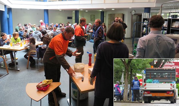 Der Abschluss der Aktion fand gegen Mittag diesmal aufgrund der Witterungsverhältnisse nicht auf dem Neuen Markt, sondern im Foyer des Rathauses statt. Dort gab es Getränke und ein stärkendes Vesper als Dankeschön von der EWG.