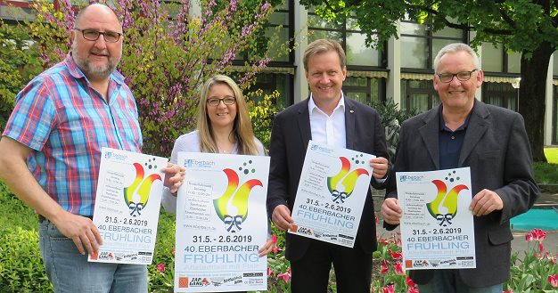 Dreitägiges Stadtfest bietet wieder ein buntes Programm Bernhard Walter, Julia Scheurich, Bürgermeister Peter Reichert und Tobias Soldner (v.l.) stellten das Programm des 40. Frühlingsfestes vor. (Foto: Claudia Richter)(cr) Ende Mai wird in Eberbach zum 40. Mal der “Eberbacher Frühling” gefeiert. Das Fest in der Innenstadt soll wieder ein attraktives Programm für Kinder und Erwachsene bieten.