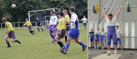 Sportfest mit vielen Höhepunkten Natürlich gab es Fußball beim Sportfest des SV Dielbach. Aber auch Demonstrationen der Gewichtheber vom SV Germania Obrigheim gab es zu sehen. (Fotos:Baumgartner)(tb) Am Wochenende veranstaltete der SV Dielbach sein traditionelles Sportfest. Viel Fußball stand auch in diesem Jahr wieder auf dem Programm, bei dem bereits am Freitag mit den ersten Firmenspielen gestartet wurde. Der Samstag stand voll im Zeichen des Fußballnachwuchses. Zuerst fand ein großes Bambini-Spielfest (siehe Extrabericht) statt, dann trafen sich die F-Jugendlichen mit 10 Mannschaften zu einem gemeinsamen Spieltag. Parallel hierzu lief ein E-Junioren-Turnier, bei dem sich ebenfalls acht Mannschaften beteiligten. Sieger wurde hierbei die Mannschaft der SG Rothenberg, die mit 1:0 Toren gegen die zweite Mannschaft des SV Waldbrunn (bei Würzburg) gewann. Im Spiel um den dritten Platz setzte sich der FC Limbach mit 4:3 Toren nach Siebenmeterschießen gegen die erste Waldbrunner Mannschaft durch.