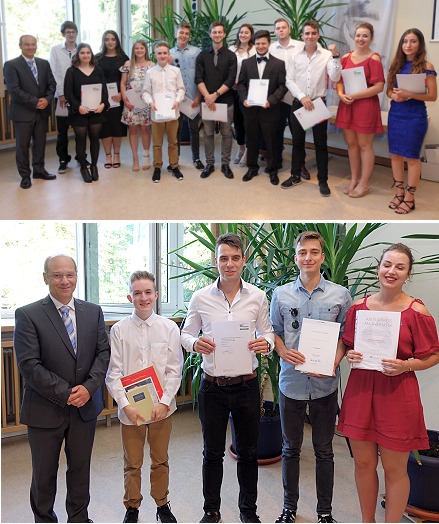 Im Anschluss gab es Grund zum Loben: Marius Luft erhielt für seinen Abiturschnitt von 2,0 ein Lob, daneben wurden noch Preise für die Prüfungsbesten in den Hauptfächern vergeben. Der Scheffel-Preis im Fach Deutsch ging an Alexander Schröder, über den Preis des Deutsch-Amerikanischen Instituts konnte sich Clemens Ebowe freuen. Träger des Schulpreises Ökonomie wurde Paul Hammann, und den Abiturpreis Mathematik der Deutschen Mathematiker Vereinigung erhielt Selina Schifferdecker.