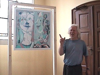 Bilderzyklus über Maria als Mutter und Frau Armin Stähle mit einem der 12 Werke seines Bilderzyklus "Maria-Mutter-Frau". (Foto:Richter)(hr) (el) Mit der Ausstellung eines Bilderzyklus des Eberbacher Künstlers Armin Stähle setzt die Evangelische Kirchengemeinde Eberbach eine noch junge Tradition fort: Nämlich im Raum der in den Sommermonaten geöffneten Michaelskirche Bilder und Plastiken auszustellen, die sich mit religiösen Themen auseinandersetzen. In diesem Jahr, dem Jahr des 775-jährigen Jubiläums der Stadt Eberbach, stellen dazu heimische Künstler ihre Werke zur Verfügung.