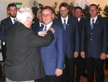 (tw) Im Rahmen des Festbanketts zur Feier des 90-jährigen Bestehens des MGV 1912 "Sängerlust" Rockenau e.V. wurde der langjährige 1.Vorsitzende Günter Eiermann besonders gewürdigt. Bürgermeister-Stellvertreter Hermann Bussemer überreichte ihm die Ehrennadel des Landes Baden-Württemberg mit der Urkunde des Ministerpräsidenten Erwin Teufel. Günter Eiermann war über 30 Jahre in der Vorstandschaft, davon 26 Jahre Vorsitzender des MGV und hat den Verein maßgeblich geprägt. Erst im Februar dieses Jahres hatte er sich aus der Vorstandschaft zurückgezogen.