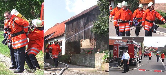 In Moosbrunn war hinter einem Wohnhaus eine Scheune in Brand geraten, in der sich spielende Kinder aufhielten. Zunächst rückte die Abteilungswehr Moosbrunn an, rettete mit Atemschutz die Kinder aus der Scheune und begann mit der Brandbekämpfung. Nach und nach trafen die alarmierten Wehren aus Schönbrunn, Schwanheim, Allemühl und Haag am Brandort ein, legten Wasserleitungen, schützten mit Hydro-Schilden das Wohnhaus und bekämpften den Brand. Kritisch verfolgt wurde der Übungsverlauf von Gesamtkommandant Peter Heiß, Unterkreisführer Jürgen Sigmund und Bürgermeister Roland Schilling. Eine weitere Parallele zum Scheunenbrand in Igelsbach zeigte sich während der Löschübung: Der Wasserdruck und die vorhandene Wassermenge sind für einen derartigen Großbrand zu gering.