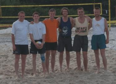 TV-Eberbach beim Beach-Volleyball-Turnier in Höpfingen Das Bild zeigt die sechs Eberbacher Spieler nach dem Turnier. Von links: Steffen Scheible, Konstantin Nei, Thorsten Grimme, Kurt Koch, Jörg Mechler und Frieder Wagner.(bm) (jm) Am letzten Samstag waren die Volleyballer des TV Eberbach beim Beach-Volleyball-Turnier in Höpfingen mit drei Mannschaften aktiv. Nachdem es ja bereits seit letztem Jahr eine Beach-Anlage am TV-Turnerheim gibt, werden auch die Leistungen der Eberbacher in dieser Trendsportart stetig besser.