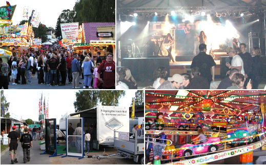 102. Auflage des Beerfelder Pferde-, Fohlen und Zuchtviehmarktes Marktreiben mit Gewerbeausstellung auf dem Freigelände und „Crossfire“ im vollbesetzten Festzelt. (Fotos:Claussen)(jc) Gestern startete in Beerfelden der Pferdemarkt. Auch in diesem Jahr stehen neben dem üblichen Markttreiben mit Schau- und Fahrgeschäften das große Reit- und Springturnier, die Pferdeleistungsschau und die größte Zuchtviehschau Hessens im Mittelpunkt. Die Gewerbeausstellung in der Oberzenthalle und auf dem Freigelände zählt ebenfalls seit vielen Jahren zum festen Bestandteil des Marktgeschehens. Bereits gestern gab es ein reichhaltiges Programm, das am Morgen vom Auftakt des Reit- und Springturniers über einen Kindernachmittag bis zum abendlichen Auftritt der Rockband „Crossfire“ im vollbesetzten Festzelt reichte. Die offizielle Eröffnungsfeier in der Markthalle war von einem abwechslungsreichen Musikprogramm umrahmt, das in Tanzmusik mit dem „Original Odenwald Echo“ mündete.