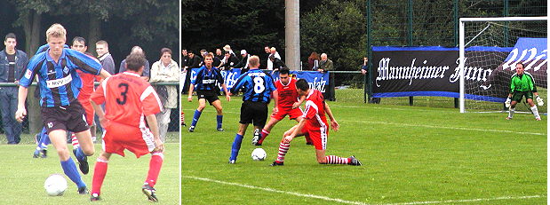 Mitten in die erste starke Mannheimer Drangperiode hinein fiel wie aus dem Nichts der zweite Treffer für die Odenwald-Auswahl. Dieses Tor war der schönste Treffer des Tages. Hirschhorns Pascal Roncone setzte zu einem Solo-Lauf über das halbe Spielfeld an, ließ einige verdutzte Profis links liegen, spielte Doppelpass mit Mannheims Abwehrspieler und versenkte den Ball, unhaltbar für Carsten Nulle, im Netz (33.). Bereits das zweite Erfolgserlebnis für den Vollblutstürmer des FC Hirschhorn.