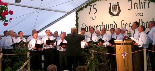 MGV „Sängerbund“ Hesselbach feierte 75jähriges Vereinsjubiläum (Foto:privat)(tw) (gvh) Nach einem kurzen Festakt auf dem Friedhof zum Gedenken der verstorbenen Vereinsmitglieder begann am Freitag das bunte, tönende Fest mit einem stimmungsvollen Kommersabend.