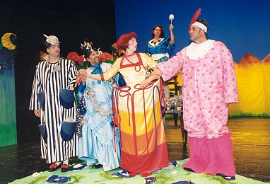 Mit viel Spaß am Spiel bringen die fünf Akteure der Musikbühne Mannheim die Geschichte im Schlosshof auf die bunte, schillernde Bühne. Verkleidungen, Wortwitz, Clownereien und Artistik bringen noch mehr Leben in das Spiel. Mit großem Erfolg hat das Ensemble das Stück an verschiedensten Bühnen gespielt.