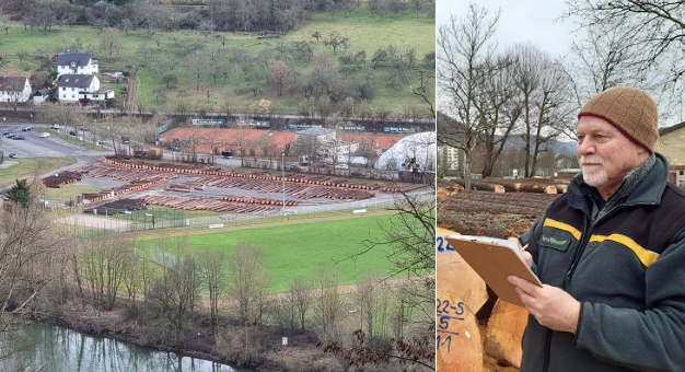Einen Ort zu finden, der allen Ansprüchen genügt, ist jedoch gar nicht so einfach, wie Rüdiger Dehn, Revierleiter bei ForstBW und Lagerplatzverantwortlicher, erklĂ€rt. Denn der Platz muss ausreichend groĂ sein, um alle StĂ€mme nebeneinander prĂ€sentieren zu können. AuĂerdem ist eine ebene Lage von Vorteil. Gute Zufahrtsmöglichkeiten und Raum für die Verladung der StĂ€mme sind Voraussetzung. Die tiefe Lage von Eberbach bietet einen weiteren groĂen Vorteil: Im Winter bleibt hier kaum Schnee liegen. Das erspart ein mühsames RĂ€umen des Platzes und Abkehren der StĂ€mme.
