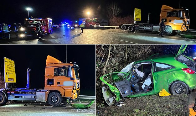 Eine 29-jährige Opel-Fahrerin war gegen 5.30 Uhr auf der Hauptstraße unterwegs und bog nach links in die Bundesstraße ein. Dort kollidierte der Pkw mit einem von Mosbach nach Eberbach fahrenden Lkw. Durch die Kollision wurde die Frau in ihrem Opel eingeklemmt und musste von der Feuerwehr herausgeschnitten werden. Sie erlitt schwere Verletzungen und kam ins Krankenhaus nach Mosbach. Der Fahrer des Lkw wurde mit leichten Verletzungen in die GRN-Klinik Eberbach gebracht.