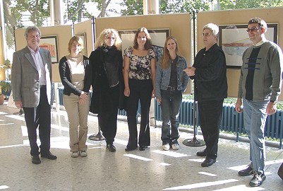 Kunst für die Sporthallen-Fassade Die vier Siegerinnen vor ihren Entwürfen mit Schulleiter Günter Wiedemer (l.), Kunstlehrer Manfred Riederer (2.v.r.) und Sascha Walz von der Firma Haering. (Foto:Huck)(hr) Anlässlich des Neubaus der Hohenstaufen-Sporthalle am Gymnasium initiierte Sascha Walz von der Farbenfabrik Haering einen Schülerwettbewerb. Die Firma stiftete ein Preisgeld von insgesamt 300 Euro. Durch eine künstlerische Fassadengestaltung sollte die große Wandfläche aufgelockert und die Funktion der Halle erkennbar gemacht werden. Es beteiligten sich Schülerinnen und Schüler der Klassenstufen 12 und 13. Da die Fassade zum Zeitpunkt des Wettbewerbs noch nicht stand, mussten sich die jungen Künstler auf den Bauplan beziehen. Die preisgekrönten Entwürfe zeigen Bewegungsabläufe, die figurativ oder abstrakt dargestellt sind bzw. ein Emblem, das auf die Funktion der Halle verweist. Bei der Auswahl durch die Jury wurde die formale Gliederung stärker bewertet als die Farbwahl. Den 1.Preis erhielt Christine Fischer aus der Klassenstufe 13. Ihr Entwurf, eine Figur im Sprung, wirkt zeichenhaft. die endgültige Ausführung wäre als Wandmalerei oder in Metall denkbar.