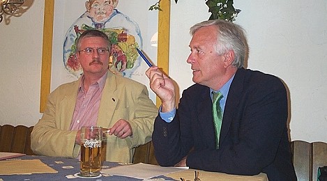 In der anschließenden Diskussion ging es u.a. um die EU-Ost-Erweiterung geäußert. Schmidbauer teilt dabei Bedenken der deutschen Landwirte und versprach, für rechtlich gleiche Bedingungen einzutreten, damit die Wettbewerbsfähigkeit gegeben ist. Schmidbauer rief dazu auf, am 22.September zur Wahl zu gehen und lud zur Radtour am 23.August vom Schönbrunner Rathaus zum Eberbacher Kuckucksmarkt ein. Joachim Bösenecker dankte dem Abgeordneten Schmidbauer für seine engagierte Rede und die Gelegenheit, Politik hautnah zu erleben.