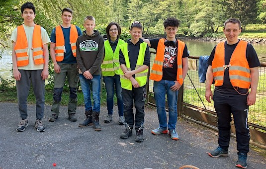 Schutzaktion für wandernde Amphibien abgeschlossen Helfer des NABU Eberbach nach dem Zaunabbau am Itterstausee, darunter auch vier Schüler des Hohenstaufen-Gymnasiums im Sozialpraktikum. (Foto: Philipp Kaiser)(bro) (ako) Die alljährlich im Frühjahr stattfindende Schutzaktion für wandernde Amphibien im Raum Eberbach wurde dieser Tage - wie immer Ende April/Anfang Mai - abgeschlossen.