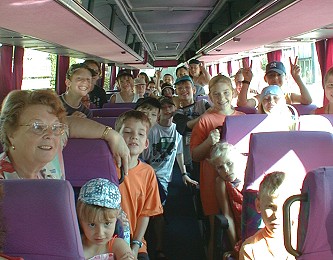 Eberbacher Kids machen Luisenpark unsicher (Foto:C.Richter)(hr) (cr) Strahlend blauen Himmel, erwartungsvoll blickende Kinder und Erwachsene mit guten Nerven konnte man heute morgen gegen 9 Uhr an der Stadthalle vorfinden. Der Grund: Die Arbeiterwohlfahrt (AWO) startete zu ihrem fast schon traditionellen Ausflug nach Mannheim in den Luisenpark. Der von der Stadtverwaltung mitbezuschusste Bus mit 65 Plätzen ist schon seit längerem ausgebucht. Aber schon viel länger sind die Vorbereitungen für das diesjährige Ferienprogramm im Gange. Seit 23 Jahren bietet die AWO Ferienspaß an, so Vorsitzender Günther Ihrig. Auf die Idee für ein Ferienprogramm kam vor vielen Jahren ein Lehrer, dem auffiel, dass sich viele Kinder ohne Schule langweilten. Er besorgte z.B. Tischtennisschläger und Farben und bot ein Programm an, dem sich im Laufe der Jahre immer mehr Vereine anschlossen. Bis zu 115 Kinder hat die AWO während ihrer Spielangebote an einem Tag schon betreut, und dies alles von ehrenamtlichen Mitarbeitern, die auch heute wieder mit den Kindern durch den Luisenpark ziehen. Die Höhepunkte seien wie immer die Wasserspiele, so Vorstandsmitglied Ulrich Hesper. Und damit die Kinder nicht verdursten müssen, werden kistenweise Getränke mit in den Park geschleppt, um die Kinder vor und nach den Spielen zu versorgen.