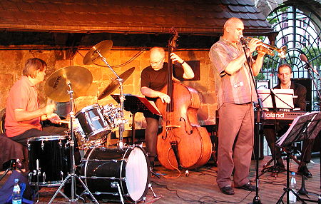 Jazz-Formation wusste zu gefallen Foto:Claussen(jc) Rund 60 Jazz-Freunde kamen am gestrigen Freitag im Innenhof des Pulverturms auf ihre Kosten. Die Jazz-Formation „French Ouarter“ des Hirschhorner Bassisten Gerd Mayer-Mendez, die auf Einladung des Kulturlabors gastierte, überzeugte dabei mit bekanntem Mainstream-Jazz. Die Band hat sich durch ihre regelmäßigen Auftritte in der Region einen guten Namen erarbeitet.