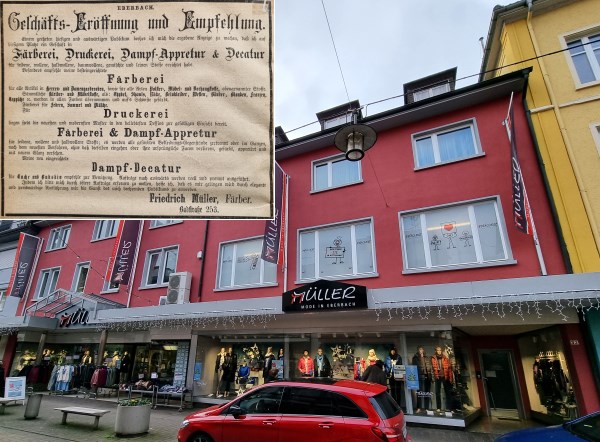 Die Wurzeln des Modehauses Müller gehen fast 150 Jahre - ins Jahr 1874 - zurück, als Friedrich Müller eine Färberei in der Badstraße eröffnete. Nicht zuletzt deshalb hielt sich in Eberbach die Bezeichnung “Färber Müller” bei manchen Kunden bis heute, obwohl in dem Modehaus nichts mehr an die Färberei der Gründungszeit erinnert. Die Familie Müller führt das Unternehmen mittlerweile in vierter Generation, in der Glanzzeit mit bis zu 1.500 Quadratmetern Verkaufsfläche. Im Jahr 2017 verkleinerte Müller das Geschäft etwas und bietet Waren seitdem immerhin noch auf rund 1.150 Quadratmetern an.