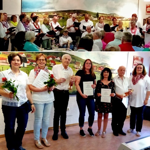 Nach dem Auftritt des Projektchores und dem Jazzchor Schlossau wurden langjährig fördernde und aktive Mitglieder des GV „Sängerkranz“ Schöllenbach geehrt.