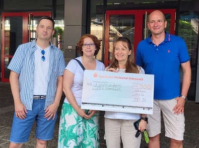 500 Euro für das Hohenstaufen-Gymnasium V. l.: Lars Ulrich, Anne Schmehling, Anja Katzner, und Carsten Momper. (Foto: privat)(bro) (lu) Am 24. Juni fand das Treffen des Abiturjahrgangs 1993 statt, um das 30-jährige Abitur zu feiern. Im Vorfeld dazu traf man sich am Hohenstaufen-Gymnasium zu einer Schulführung, die von Schulleiterin Anja Katzner und deren Stellvertreterin Anne Schmehling durchgeführt wurde.