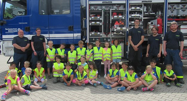 Besichtigungen und Spiele bei den Helfern in Blau (Foto: privat)(hr) (ek) Am Mittwoch, 28. Juni, besuchten die zukünftigen Schulkinder des Kindergarten St. Maria das THW in Eberbach.