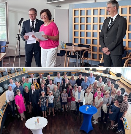 Am Freitag habe Bürgermeister Peter Reichert seinen Kollegen, Bürgermeister Christophe Arminjon, samt den weiteren französischen Gästen im Horst-Schlesinger-Saal empfangen. Auch der Eberbacher Gemeinderat und die Amtsleiter der städtischen Verwaltung Eberbachs samt Partnerinnen und Partner seien dabei gewesen.