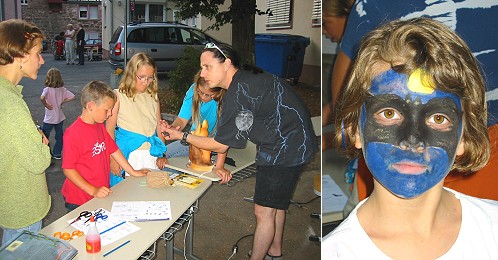 Erstmalig beteiligte sich die NABU-Gruppe Eberbach an dieser europaweiten Großaktion. Im Rahmen des Ferienspaßprogramms hatte sie zur Batnight auf den Schulhof der Dr.Weiß-Grundschule eingeladen. Rund 50 Kinder und Jugendliche sowie etliche Eltern und interessierte Erwachsene besuchten die Veranstaltung. Von 18.30 Uhr bis 21.30 Uhr gab es ein abwechslungsreiches Programm mit Spielaktionen, einem immer stark besuchten Basteltisch und einem Fledermausquiz. Ein Vorlesezelt und ein kurzer Videofilm über das Leben der Fledermäuse wurde gezeigt. Große Anziehungskraft übte ein mitgebrachtes Pflegetier aus. Das Mausohrmännchen durfte, gehalten in der Hand seines „Pflegevaters“, auch gestreichelt werden.