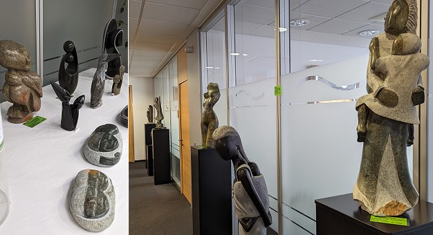 Ausstellung in der Volksbank Neckartal - Kinderprojekt in Simbabwe wird unterstützt (Fotos: Hubert Richter)(hr) In der Hauptstelle der Volksbank Neckartal in der Eberbacher Bahnhofstraße 36a ist seit gestern eine Ausstellung von Skulpturenkunst aus Afrika zu sehen. Die Werke sollen anschließend für einen guten Zweck versteigert werden.