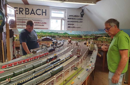 Zu besichtigen gibt es die Club-Modelleisenbahnanlage im Obergeschoss, Echt-Dampf in Spur G im Erdgeschoss sowie ein Modul mit Faller-Carsystem eines Clubmitglieds.