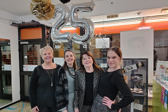 Im Jahr 1998 eröffnete Barbara Krawczyk ihre Parfümerie Barbara Krawczyk (2.v.r.) mit Martina Salerno, Mona Menges und Nadja Krawczyk (v.l.). (Foto: Claudia Richter)(cr) Das 25-jährige Firmenjubiläum von Barbara´s Beauty Boutique und ein weiteres Jubiläum wurden gestern in der HauptstraĂźe in Eberbach gefeiert.