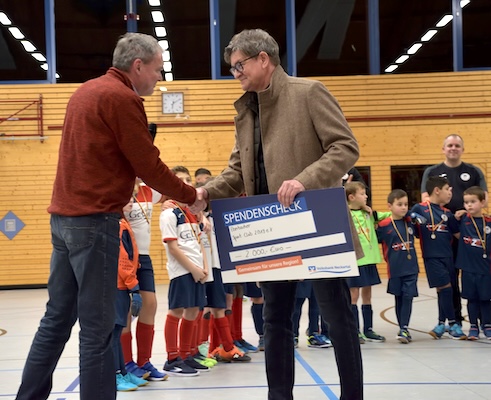 Die offizielle Übergabe fand während des Jugendhallenturniers am 6. Januar in der Hohenstaufenhalle in Eberbach statt. Die Geschäftsleitung von „krauth technology“ war durch Gerd Neureuter vor Ort vertreten. Neureuter überreichte den symbolischen Scheck an den Ehrenvorsitzenden des ESC Eberbach, Joachim Scheible, verbunden mit dem Wunsch, dass sich durch diese Spende evtl. weitere Unterstützer für die Anschaffung des zukünftigen Mannschaftsbusses finden. Die Freude über den finanziellen Zuschuss war bei allen Beteiligten, insbesondere auch bei Jugendleiter Thomas Wäsch, spürbar.