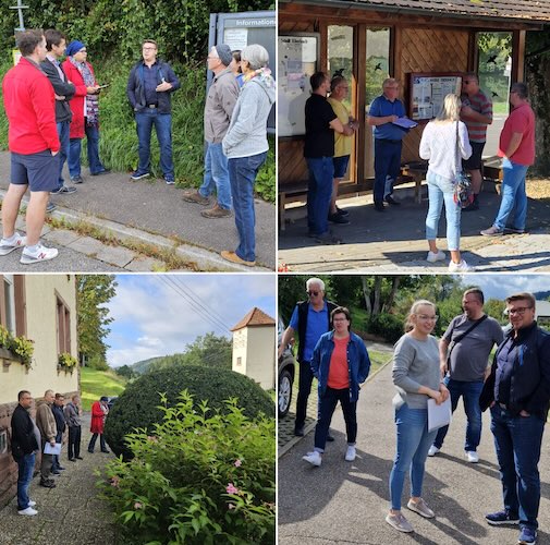 So war es auch im letzten Jahr das Ziel, mit dem jeweiligen Ortschafts-/ Bezirksbeirat sowie mit Interessierten aus den Ortsteilen Anregungen, Probleme und Wünsche direkt vor Ort zu diskutieren und sich als Kommunalpolitiker/innen selbst ein Bild der Sachverhalte zu machen. Lediglich in Brombach hatte man bereits vor den Ortsteilbegehungen ausreichend Gespräche geführt, sodass man hier auf eine weitere Begehung in beidseitigem Einvernehmen mit dem Ortsvorsteher Robin Seib verzichtet hatte.