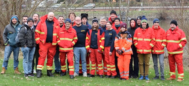 Eine gute Übung für den Ernstfall (Foto: privat)(bro) (jl) Das alljährliche Neujahrsschwimmen der DLRG Eberbach musste in diesem Jahr aufgrund des Hochwassers eine Woche später als ursprünglich geplant stattfinden. Am vergangenen Samstag war es dann so weit. Insgesamt 19 Mitglieder der DLRG aus den Ortsgruppen Eberbach, Mosbach und Backnang sowie zwei Schwimmer des Eberbacher Turnvereins stiegen um 17.30 Uhr in den Neckar, um die zwei Kilometer lange Strecke vom Fahnenmast in Rockenau bis zur DLRG Station zurückzulegen.