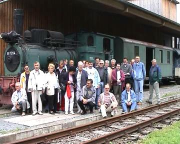 Weiter ging es mit dem Bus nach Huinghausen zur Sauerländer Kleinbahn. Auf einem Reststück einer Schmalspurigen Kleinbahn finden dort Museumsfahrten mit Dampflokomotiven statt. Besonderes Interesse erregten aber einige abgestellte Fahrzeuge im Freigelände. Die Lokomotive mit der Nummer 99 7204 hatte früher, zusammen mit einigen Wagen, ihre Heimat im Odenwald, auf der Schmalspurbahn Mosbach - Mudau.