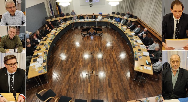 Eberbacher Gemeinderat tagte - Spendenaktion für das neue Hallenbad? Die Haushaltsredner der Fraktionen: Links von oben Peter Wessely und Dr. Dietmar Polzin (FWE), Markus Scheurich (SPD), rechts von oben Michael Schulz (CDU) und Peter Stumpf (AGL). (Fotos: Claudia Richter)(hr) In öffentlicher Sitzung im Horst-Schlesinger-Saal des Rathauses genehmigte gestern der Gemeinderat den Haushaltsplan sowie den Wirtschaftsplan der Städtischen Dienste Eberbach (SDE) für 2024, allerdings bei zwei Gegenstimmen.
