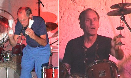 Percussion-Sounds in nie geahnter Vielfalt (Fotos:Richter)(hr) Trommler-Legende Mani Neumeier, Ober-Guru-Guru aus Finkenbach im Odenwald, begeisterte gestern abend sein rund 70-köpfiges Publikum beim Kulturlabor in der Galerie ARTgerecht. In seinem abendfüllenden Solo-Programm bewies der Alt-Rocker eindrucksvoll, wie vielfältig und kurzweilig Drums und Percussion eingesetzt werden können. Mit sphärischen Elektronik-Sounds im Hintergrund zog Neumeier alle Register seiner Rhythmus-Instrumente und musste am Ende drei Zugaben abliefern, bevor ihn seine Fans ziehen ließen.