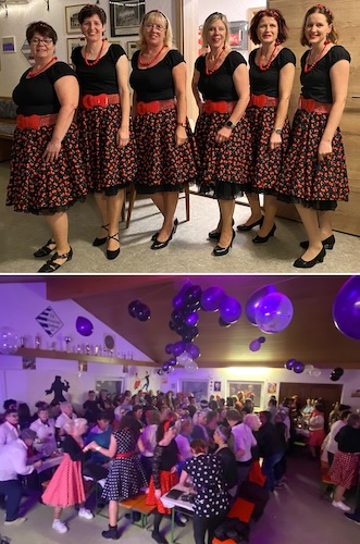 Närrische Zeitreise in die 50er Jahre  (Fotos: privat)(bro) (ku) Närrisch ging es dieses Jahr wieder am „Schmutzigen Donnerstag“ im Sportheim des SV Dielbach zu. Unter dem Motto „Rockabilly“ fanden sich wieder zahlreiche Gäste in passendem Outfit ein und ließen die 50er Jahre aufleben.