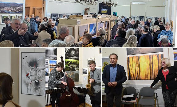 Bürgermeister Peter Reichert (Bild rechts unten mit Dr. Sigrun Paas) äuĂźerte sich erfreut über die Bilderschau, lade sie doch durch ihre Vielfalt an lokalen und regionalen Motiven dazu ein, persönliche “Lieblingsplätze” zu entdecken.