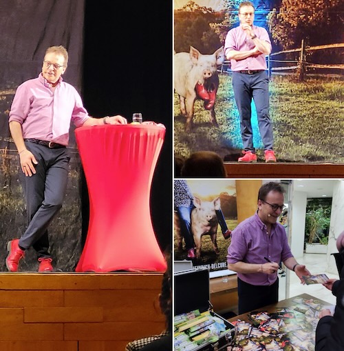 Glück g`habt - Geschichten aus dem Alltag (Fotos: Heike Feuerstein)(feu) In der fast ausverkauften Stadthalle Eberbach gastierte der Halb-Italiener und Halb-Schwabe aus Rottweil, Markenzeichen rote Lackschuhe, am Samstagabend, 24. Februar, mit seinem Programm „Glück g`habt“. Heinrich Del Core erzählte Geschichten aus dem Alltag, wie sie uns allen passieren können. Aber er erzählte sie so plastisch, schwäbisch und witzig, dass das Publikum sofort mitten drin und dabei war.