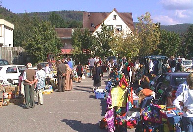 Ramsch und Trödel zum Stöbern (Foto:Richter)(hr) Rund 30 private Anbieter hatten gestern auf dem Parkplatz des BvD-Getränkemarkts im Neuen Weg ihre Flohmarkt-Artikel ausgebreitet. Ob Spielwaren, Bilder, Bücher, Geschirr, Antiquitäten - groß war die Auswahl zum Feilschen. Der Eberbacher Organisator Gerald Reinhard will auch künftig Flohmärkte in Eberbach anbieten. Infos gibt es unter Tel. (06271) 5853.