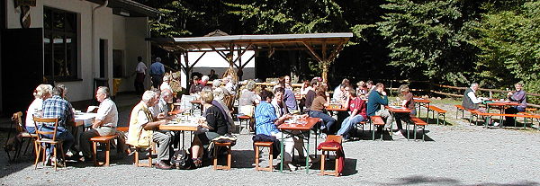 Herbstfest bei schönstem Spätsommerwetter (Foto:Claussen)(jc) Dass sich der Sommer dem Ende zuneigt, zeigt sich auch an der Tatsache, dass bereits die ersten Herbstfeste veranstaltet werden. Ob das Herbstfest des Igelsbacher Frauenchors nun bei herrlichem Spätsommer- oder Frühherbstwetter über die Bühne ging, war Veranstalter wie Besuchern aber am heutigen Sonntag egal. Jedenfalls nutzten zahlreiche Einheimische wie Wanderlustige aus der Region die Gelegenheit sich bei den wärmenden Sonnenstrahlen an der Sängerhalle zu verköstigen und einige gemütliche Stunden zu verbringen.