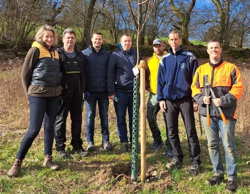 Nabu steht Streuobstwiesenbesitzer mit Rat und Tat zur Seite (Foto: privat)(bro) (as) 90 BĂ€ume konnten im Herbst 2023 in Zusammenarbeit von NABU Eberbach, Volksbank Neckartal und Naturpark Neckartal-Odenwald auf vermittelten Streuobstwiesen auf dem Breitenstein gepflanzt werden. Damit diese eine Zukunft haben und zu groĂen alten BĂ€umen heranwachsen können, fanden sich am vergangenen Samstag die Streuobstwiesenbesitzer vor Ort ein, um den Pflanz- und Erziehungsschnitt durchzuführen.