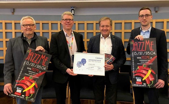 Pharma-Unternehmen investiert in Eberbacher Kultur V.l. Tobias Soldner, Dr. Lutz Deitinghoff, Bürgermeister Peter Reichert und Fabian Kapp. (Foto: StVE)(hr) Die Veranstaltungsreihe “JazzMe†der Stadt Eberbach wird in diesem Jahr finanziell unterstützt von der Sparkasse Neckartal-Odenwald und erstmals von der Catalent Germany Eberbach GmbH.