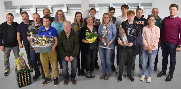 Am Karfreitag um 21 Uhr fand die Siegerehrung des Osterschießens statt mit folgenden Ergebnissen: In der Einzelwertung bei der Jugend war Tim Luca Koch mit 108 Ringen der Sieger, gefolgt von Kai Hallstein ebenso mit 108 Ringen und Aron Schäfer mit 103 Ringen. In der Einzelwertung bei den Damen haben am besten gezielt: Jana Dinnebier (109 Ringe), Andrea Siefert (108 Ringe) und Natascha Holighaus (107 Ringe). In der Einzelwertung bei den Herren traf Helmut Michel am meisten: 115 Ringe von 120 möglichen. Auf Platz zwei schaffte es Reiner Rodemich (114 Ringe), Dritter wurde Jannik Rodemich (110 Ringe).