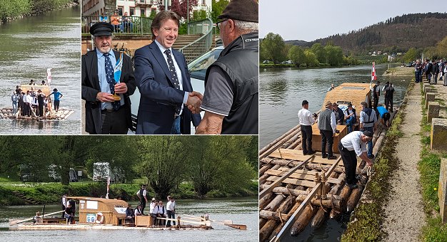 Die Gruppe aus dem Schwarzwald, hat sich der Flößerei verschrieben und möchte dieses alte Handwerk, mit dem früher Holzstämme zusammengebunden und auf Flüssen transportiert wurden, lebendig erhalten. Die Besatzung wurde am Neckarlauer durch Bürgermeister-Stellvertreter Michael Reinig sowie Abordnungen des Eberbacher Schiffervereins und des Bürger- und Heimatvereins empfangen.