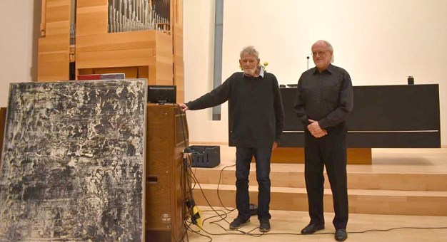 Von Hartmut Tramer durfte man im Orgelpart Auszüge aus Anton Bruckners 4.Sinfonie hören, ein Orgelwerk von Autenrieth (“Thanatos“), „Adagio“ (Bach), und „Wanderer und Stolperstein“ (Schubert). Tramers Klang-Collagen beinhalteten “Die Hütte von Baba Yaga“ von Mussorgsky, und „Das groĂźe Tor von Kiew“.