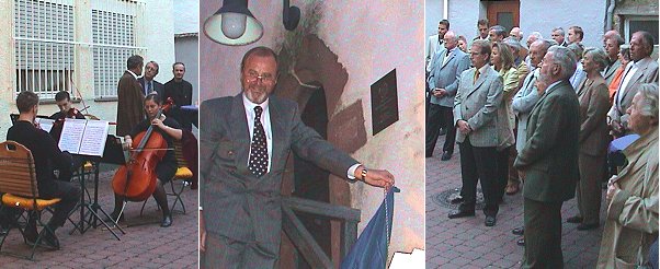 Rotarier feiern kleines Haspelturm-Jubiläum Rotary-Präsident Kurt Henn enthüllte die Gedenktafel am Eingang des Haspelturms. (Fotos:Richter)(hr) Mit einer kleinen Feierstunde erinnerte heute der Rotary-Club Eberbach an ein Projekt, das er vor zehn Jahren federführend umgesetzt hatte: Die Sanierung des Haspelturms, in dem sich seither das Eberbacher Zinnfigurenkabinett befindet. Präsident Kurt Henn enthüllte als dauerhafte Erinnerung an den Einsatz der Rotarier eine Bronze-Gedenktafel am Turmeingang. Zahlreiche Gäste wohnten der Zeremonie bei, darunter der ehemalige Stadtbaumeister Michael Dittert, der frühere Vorsitzende des Bürger- und Heimatvereins, Reiner Heun, sowie Hannes Melchinger, der das Zinnfigurenkabinett im Wesentlichen konzipiert hatte.