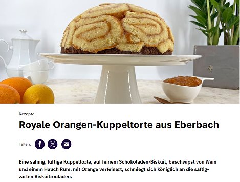 Koch-Bloggerin und Tortendesignerin Stefanie Biedermann aus dem schwäbischen Brackenheim präsentierte in der Sendung einen “Nachbau†der Viktoria-Torte, der als “Royale Orangen-Kuppeltorte aus Eberbach†bezeichnet wurde. Das von Biedermann aufgezeichnete Rezept gibt es online dazu. Inwieweit es dem Original entspricht und ob die Torte tatsächlich wie die berühmte Kreation von Heinrich Strohauer aus dem Jahr 1962 schmeckt, ist unklar. Tatsache ist aber, dass das Original-Rezept geschützt ist und eigentlich streng geheim gehalten wird.