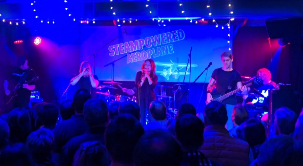 Eberbacher Coverband sprühte vor Spiellaune (Foto: Hubert Richter)(hr) Ein furioses Comeback nach über vier Jahren Pause legte gestern Abend die Eberbacher Coverband “Steampowered Aeroplane†auf Einladung des Kulturlabors im proppevollen Depot 15/7 an der Güterbahnhofstraße hin.
