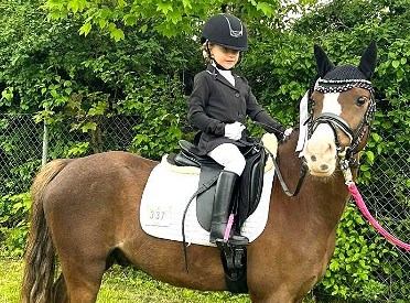 Am letzten April-Wochenende in Heidelberg-Wieblingen wurde Lina Sophie Zimmermann auf B. Calipso (unser Bild) auf Anhieb Zweite im Führzügelwettbewerb. Es war ihr erster Turnierauftritt überhaupt.